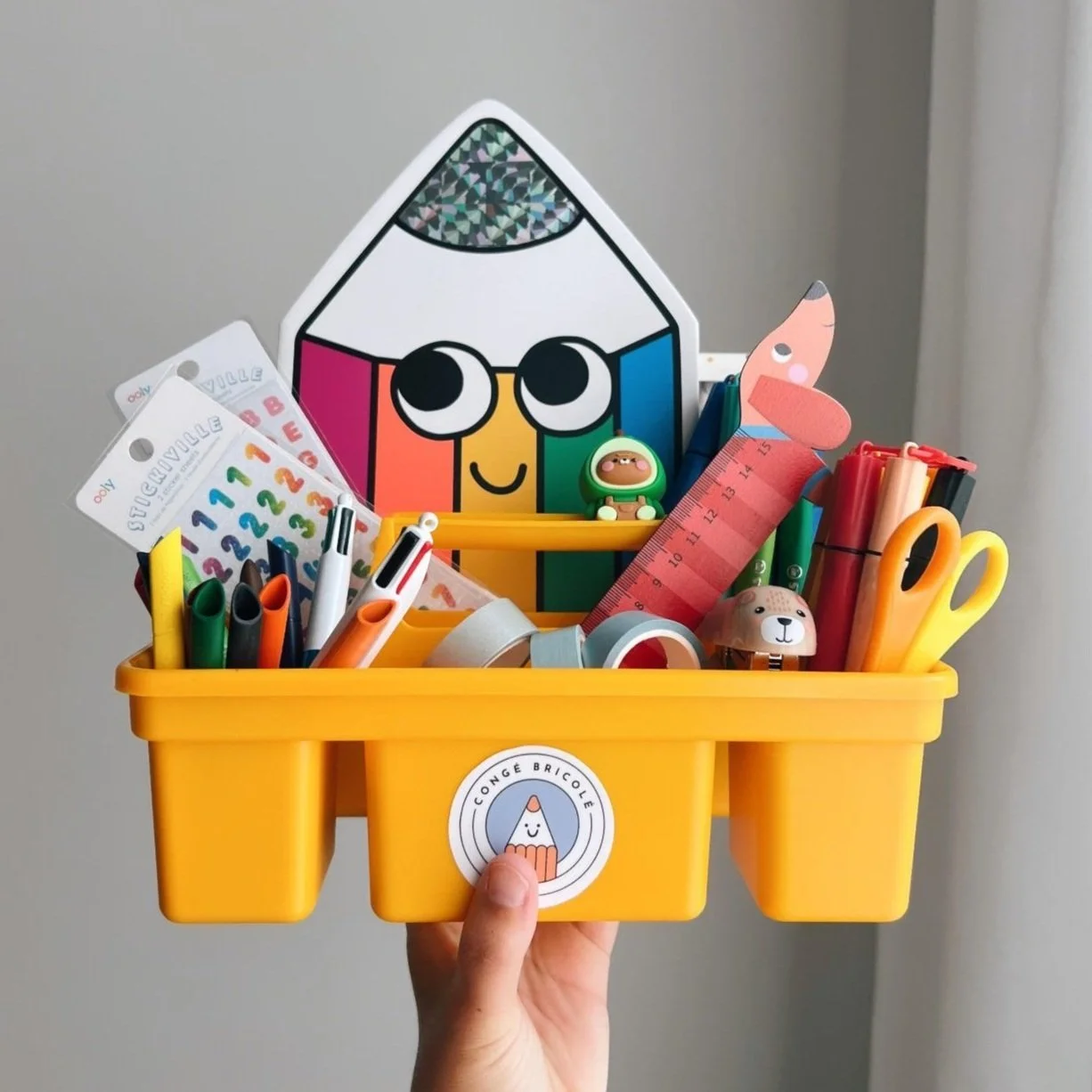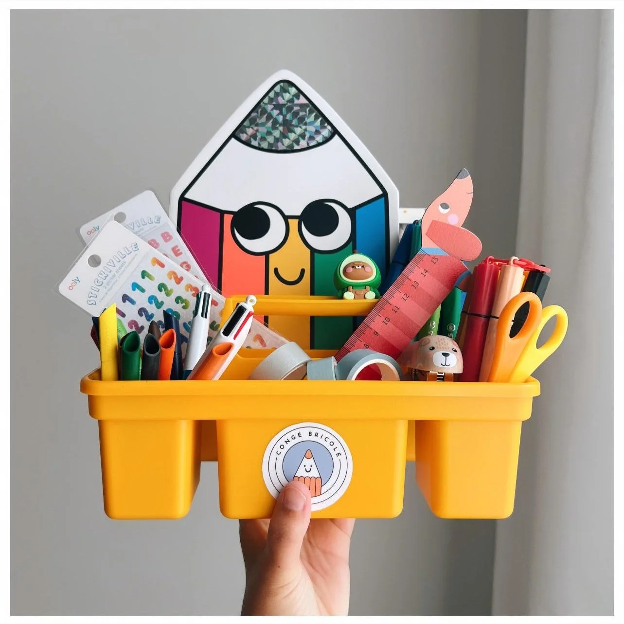 Hij is ideaal voor het basismateriaal zoals kleurtjes, stiften, lijm en een schaar in op te bergen.