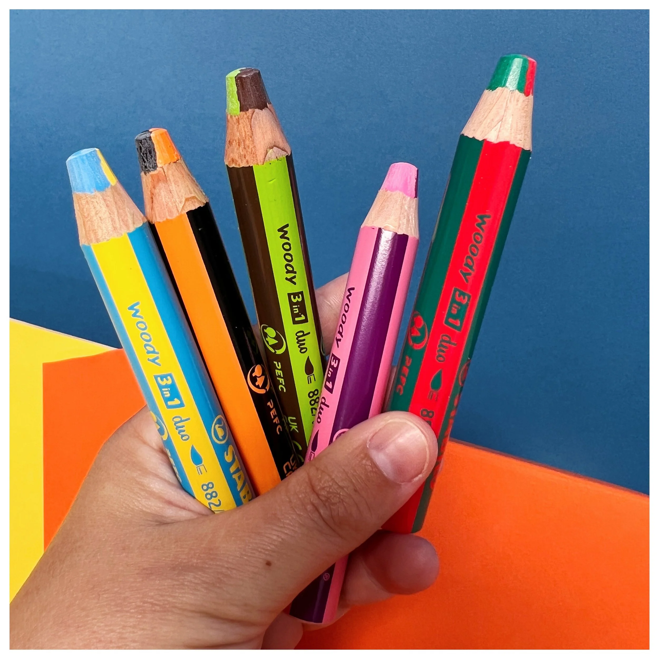 De kleurpotloden hebben een goede grip vanwege hun driekantige vorm en ze laten geen sporen na op je handen.