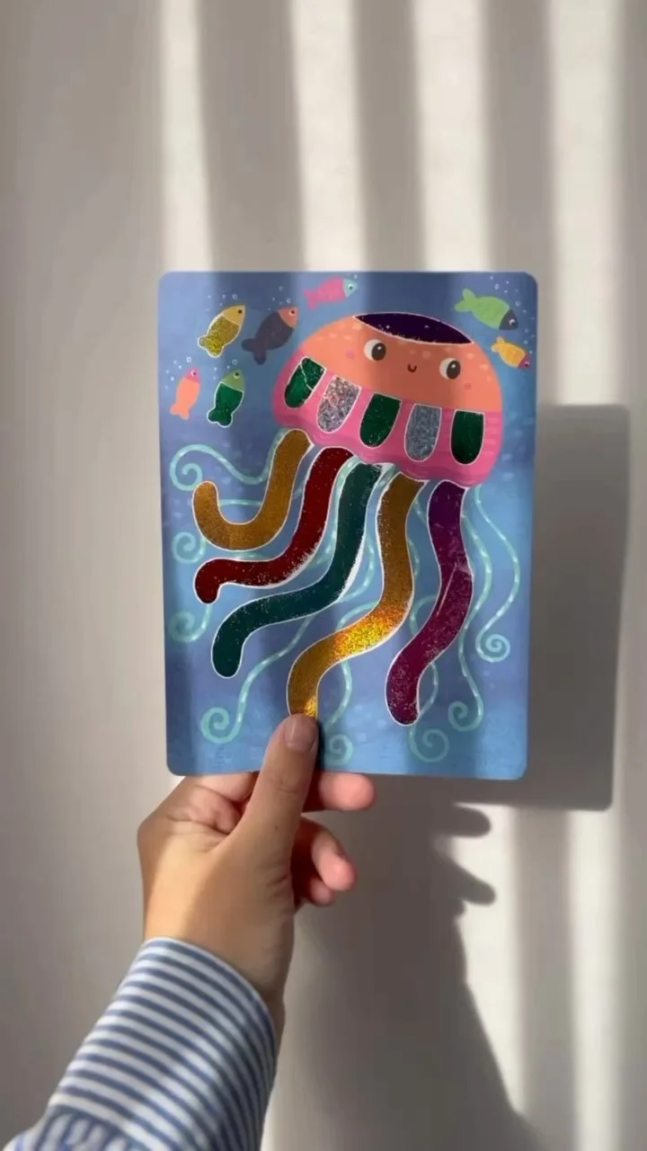 De kleurrijke, zelfklevende raamfolie kan je zonder lijm aanbrengen en hergebruiken. Hij kleeft niet alleen aan vensters, maar ook andere gladde oppervlakken.