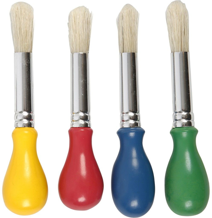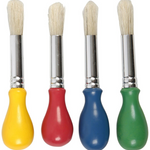Set van 4 korte, ronde kwasten van varkenshaar met dikke handvatten. Ideaal voor kleine kinderhandjes. Het brede handvat zorgt voor een goede grip en makkelijke controle tijdens het schilderen.
