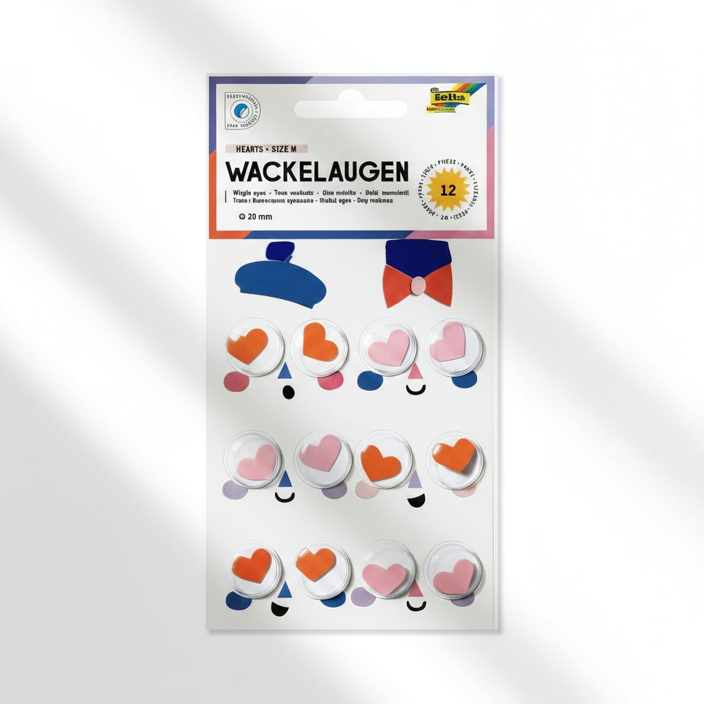 Deze 12 wiebeloogjes met hartjes zijn een must-have voor al je knutselprojecten. (20 mm)