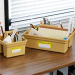 Met dit handige opbergbakje met handvat houd je al het knutselmateriaal netjes georganiseerd. De vier vakken bieden plek voor stiften, kleurtjes, lijm en scharen, alles binnen handbereik voor kleine en grote kunstenaars.