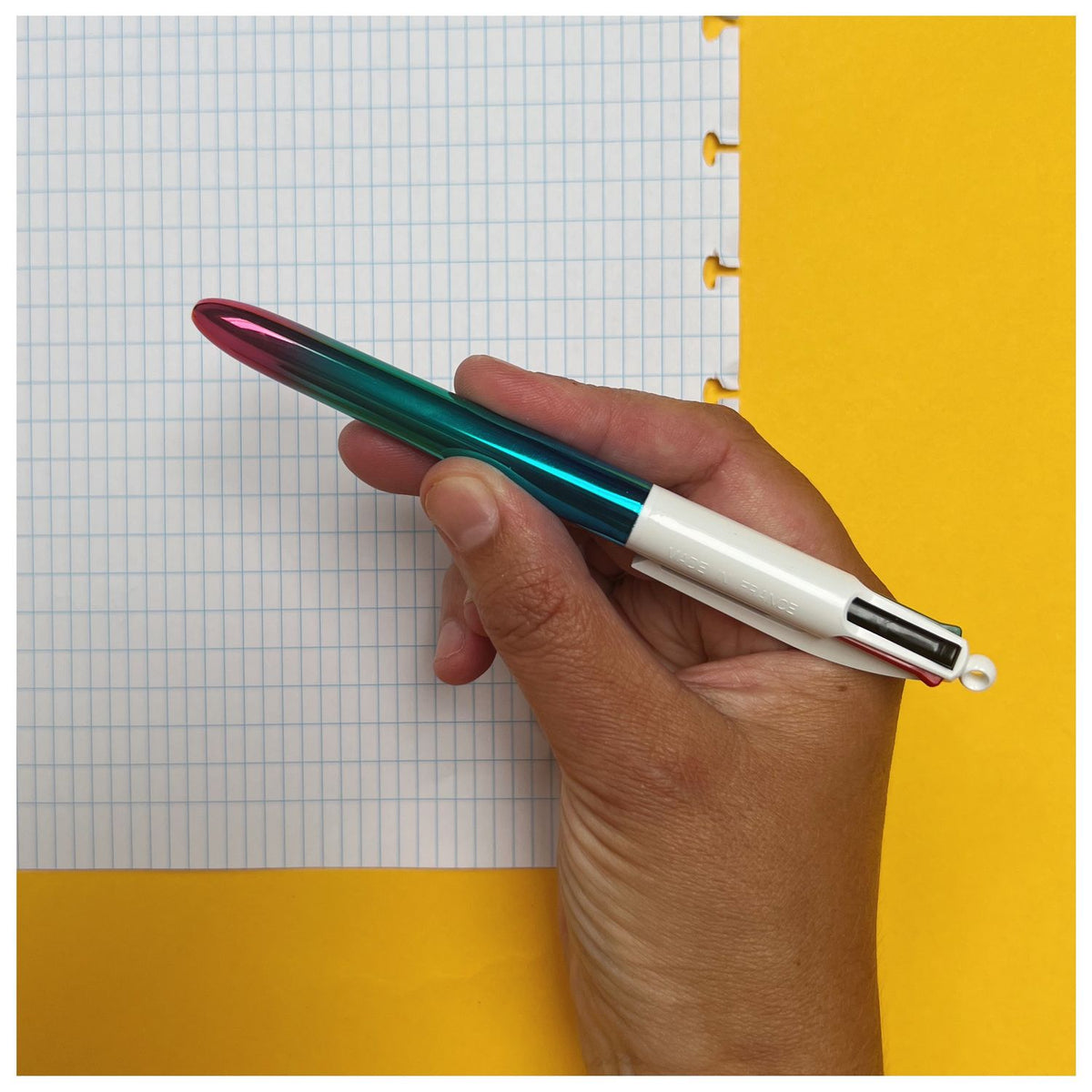 Als er een klassieker niet mag ontbreken in de pennenzak van je kind, dan is het wel deze iconische BIC 4-kleurenpen. Nu in een leuke ombre-look. Deze pen combineert gemak, veelzijdigheid en plezier in één. Je kan namelijk schrijven met blauw, rood, groen en zwart zonder te moeten wisselen van pen.
