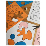 In de doos zitten 7 leuke en vrolijke knutselactiviteiten voor kinderen, geïnspireerd door echte kunstenaars zoals Rinus van de Velde, Henri Matisse en Banksy.