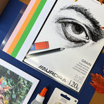 - Een tekenblok met papier