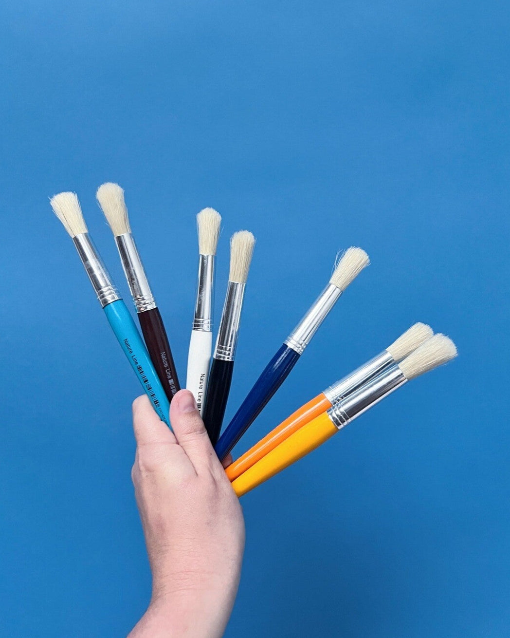 Een dik penseel van 11 cm met varkensharen. Ideaal voor eerste verfprojecten.
