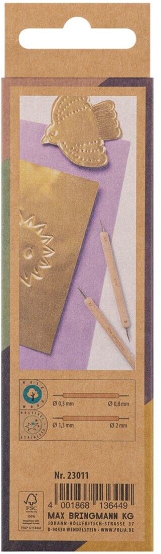 Deze set bevat 2 embossing- en prikpennen, speciaal voor embossing- en priktechnieken. Met deze pennen kun je eenvoudig gedetailleerde patronen en structuren in papier, folie of karton aanbrengen.