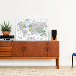 Deze poster laat je kind op een speelse manier kennis maken met de wereld: van de piramides van Egypte tot het Vrijheidsbeeld, van Brazilië tot de Eskimo’s en de beelden van Paaseiland. De grote tekening vol humor maken van het inkleuren een echte ontdekkingsreis. Nadien kan je hem inkaderen en heb je een leuke kaart voor aan de muur.