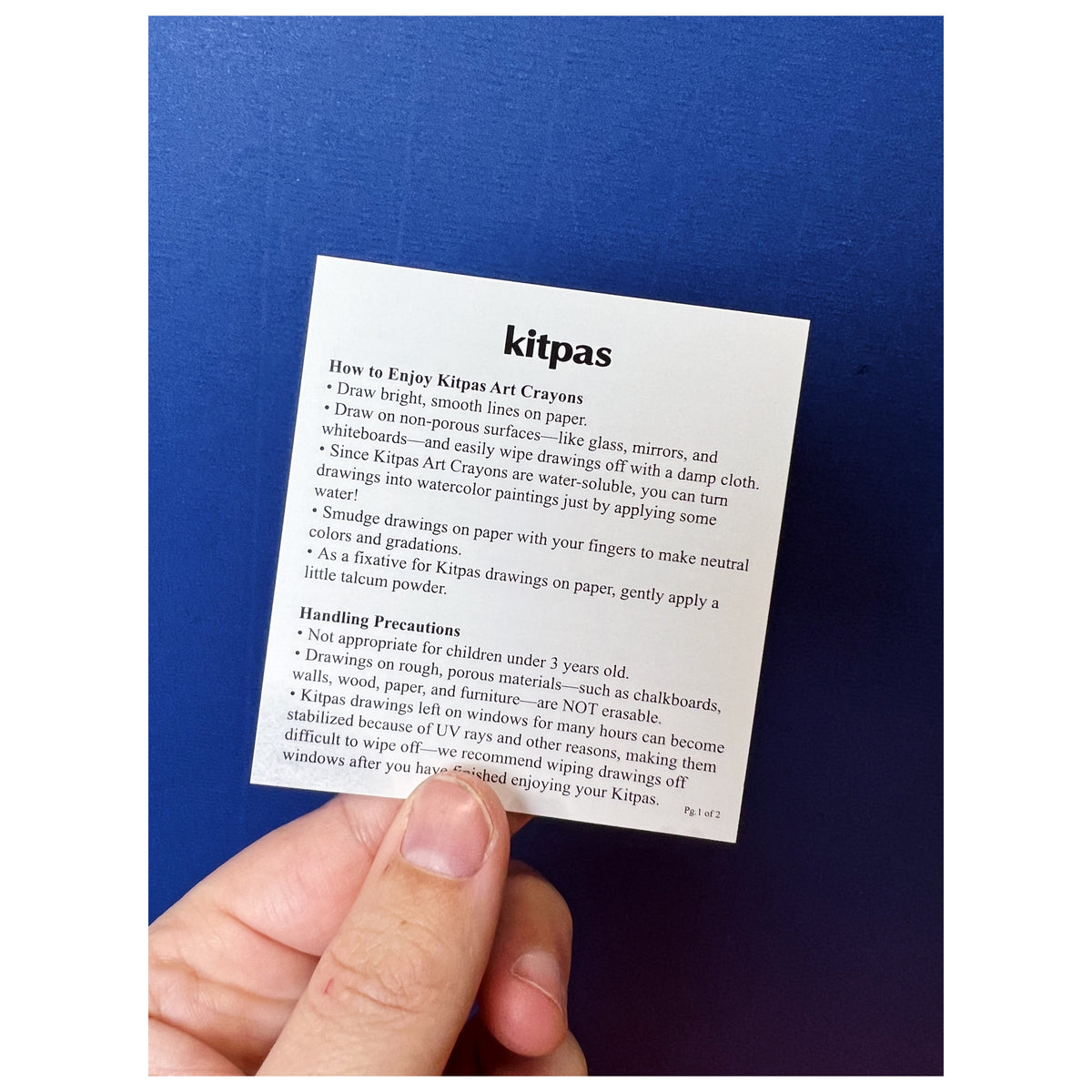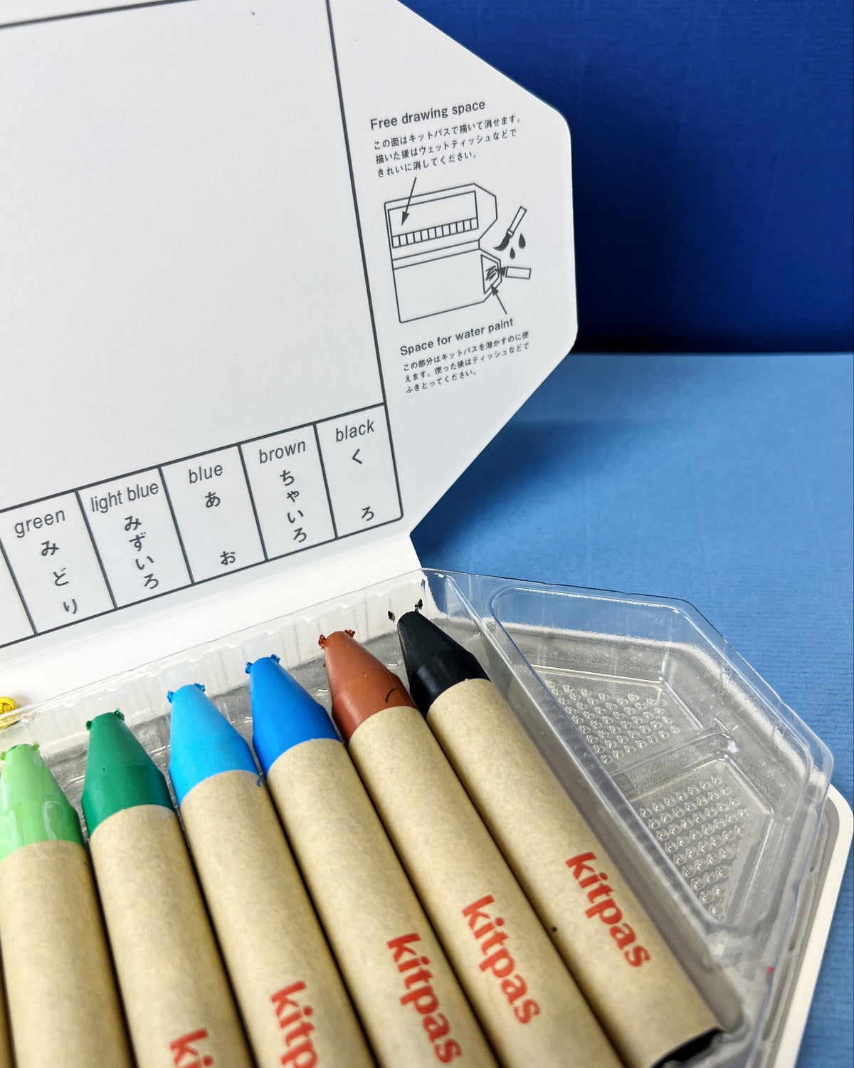 Kitpas krijtjes zijn gemaakt van natuurlijke rijstzemelenwas, afkomstig van Japanse rijst. Ze bevatten geen giftige stoffen en zijn volledig veilig voor kinderen vanaf 3 jaar.