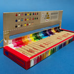 In dit doosje zitten 24 krijtjes in alle kleuren van de regenboog.
