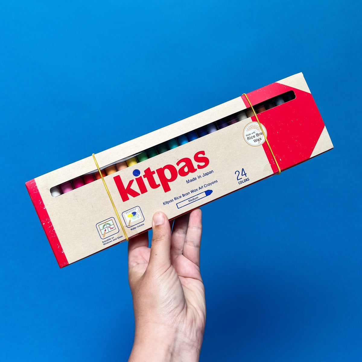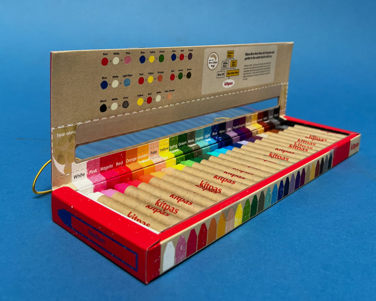 Kitpas krijtjes zijn gemaakt van natuurlijke rijstzemelenwas, afkomstig van Japanse rijst. Ze bevatten geen giftige stoffen en zijn volledig veilig voor kinderen vanaf 3 jaar.
