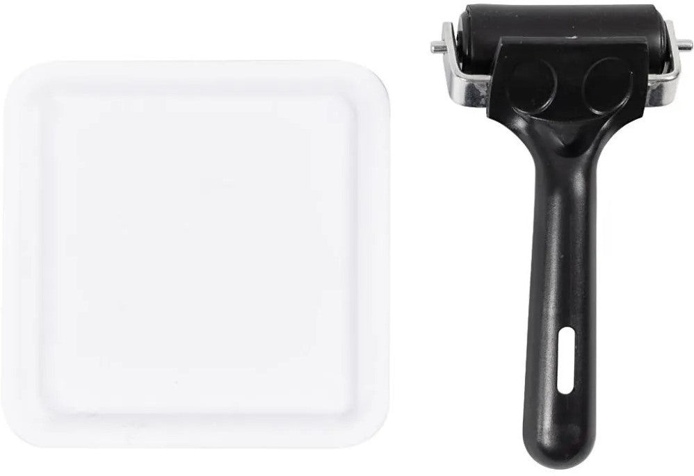 Deze roller verspreidt een dunne laag verf perfect voor lino- of monoprints te maken of andere druktechnieken.