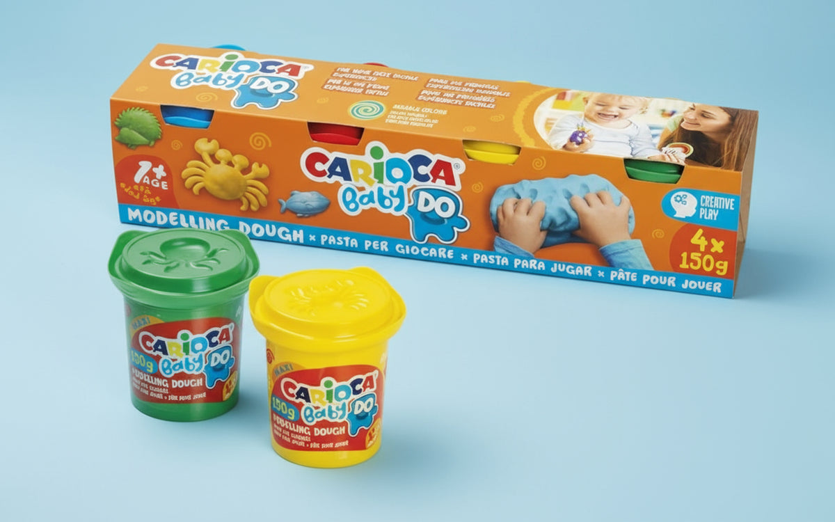 Met deze Carioca boetseerklei voor kinderen zorgt voor extra veel speelplezier! De set bevat 4 potjes van 150 gram zachte klei, ideaal om te kneden, mengen en te experimenteren.