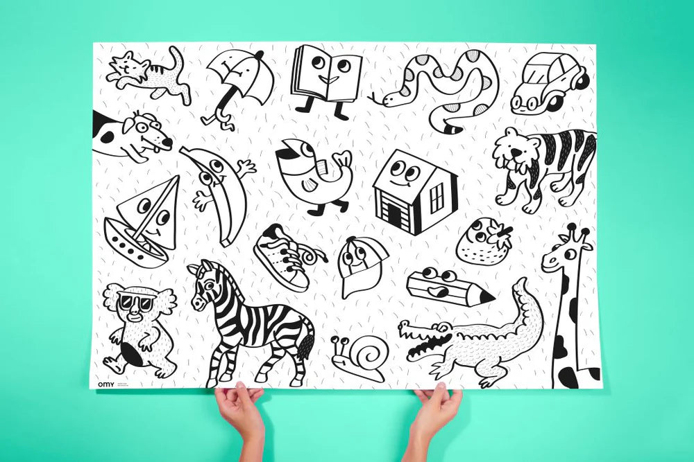 Gezellig samen knutselen en kleuren met je peuter? Deze reuzekleurplaat is een echte must-have in huis. De vrolijke illustraties zorgen voor urenlang kleurplezier. Gebruik onze beren-stiften, waskrijtjes of laat jullie helemaal gaan met vingerverf!