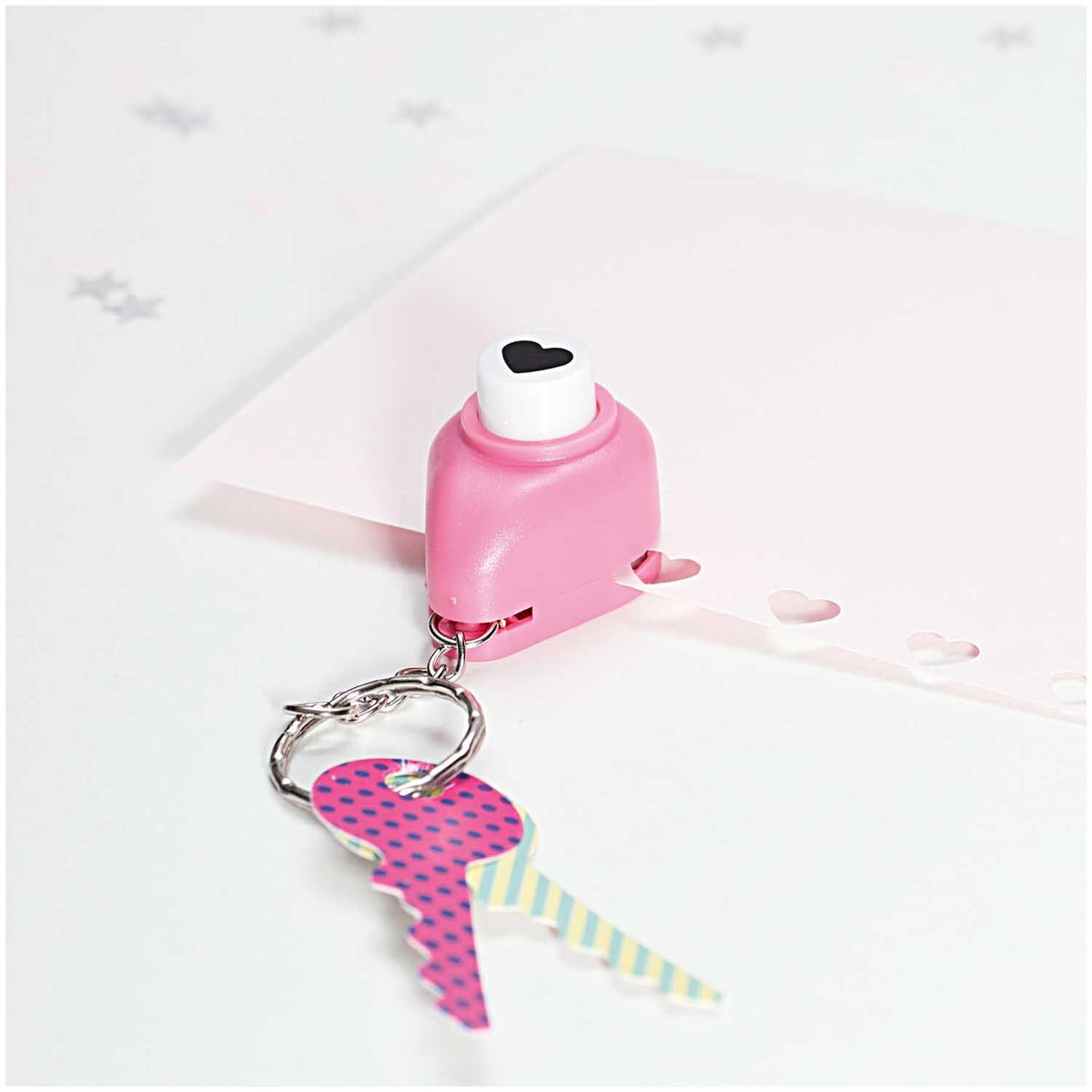 Een pons stanst eenvoudig figuren uit papier of karton. Ideaal dus voor creatieve knutselprojecten! Deze mini-pons is niet alleen leuk om mee te knutselen, maar ook superhandig als sleutelhanger. Zo is creativiteit nooit ver te zoeken.