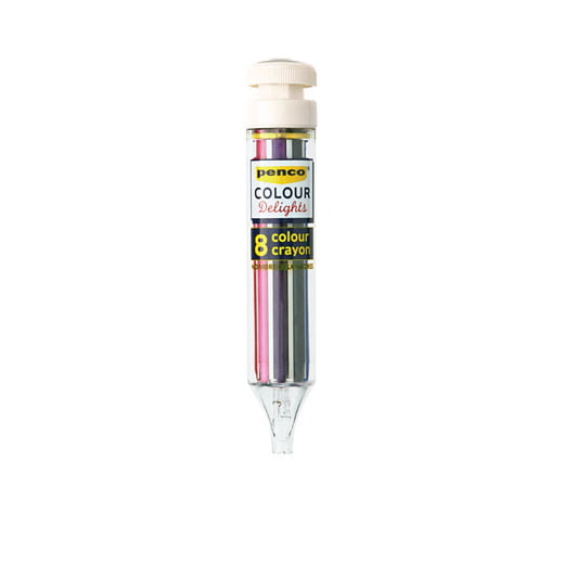 Deze handige pen heeft 8 verschillende krijtjes in één. Geen losse potloden of volle pennenzak meer nodig. Gewoon klikken en kleuren!