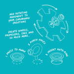 Heb je al eens draaiende wielen, propellers of schuifdeuren willen maken met je makedo bouwset? Met de Roto-Ring is het eindelijk mogelijk.
