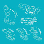 Met dit innovatieve Makedo-onderdeel maak je eenvoudig bewegende elementen in je bouwwerken van karton. (deuren, ramen, wielen, vleugels, luikjes of zelfs geheime valdeuren) Alles wordt mogelijk dankzij de 360 graden rotatie van de Spin-Hinge.