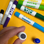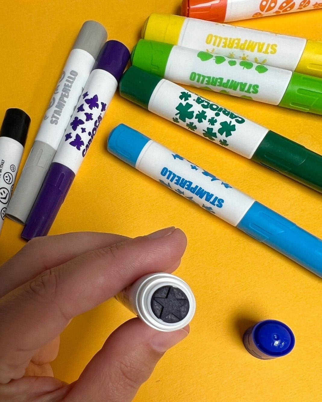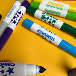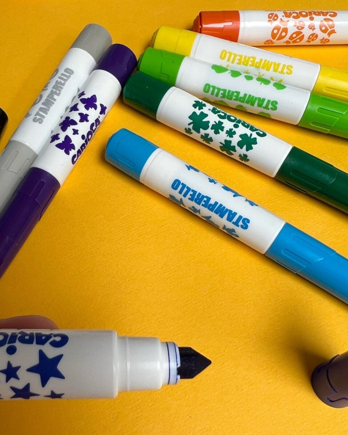 Teken en stempel naar hartelust met deze dubbelzijdige stempelstiften! Elke stift heeft twee kanten: één kant is een viltstift en de andere een stempel.