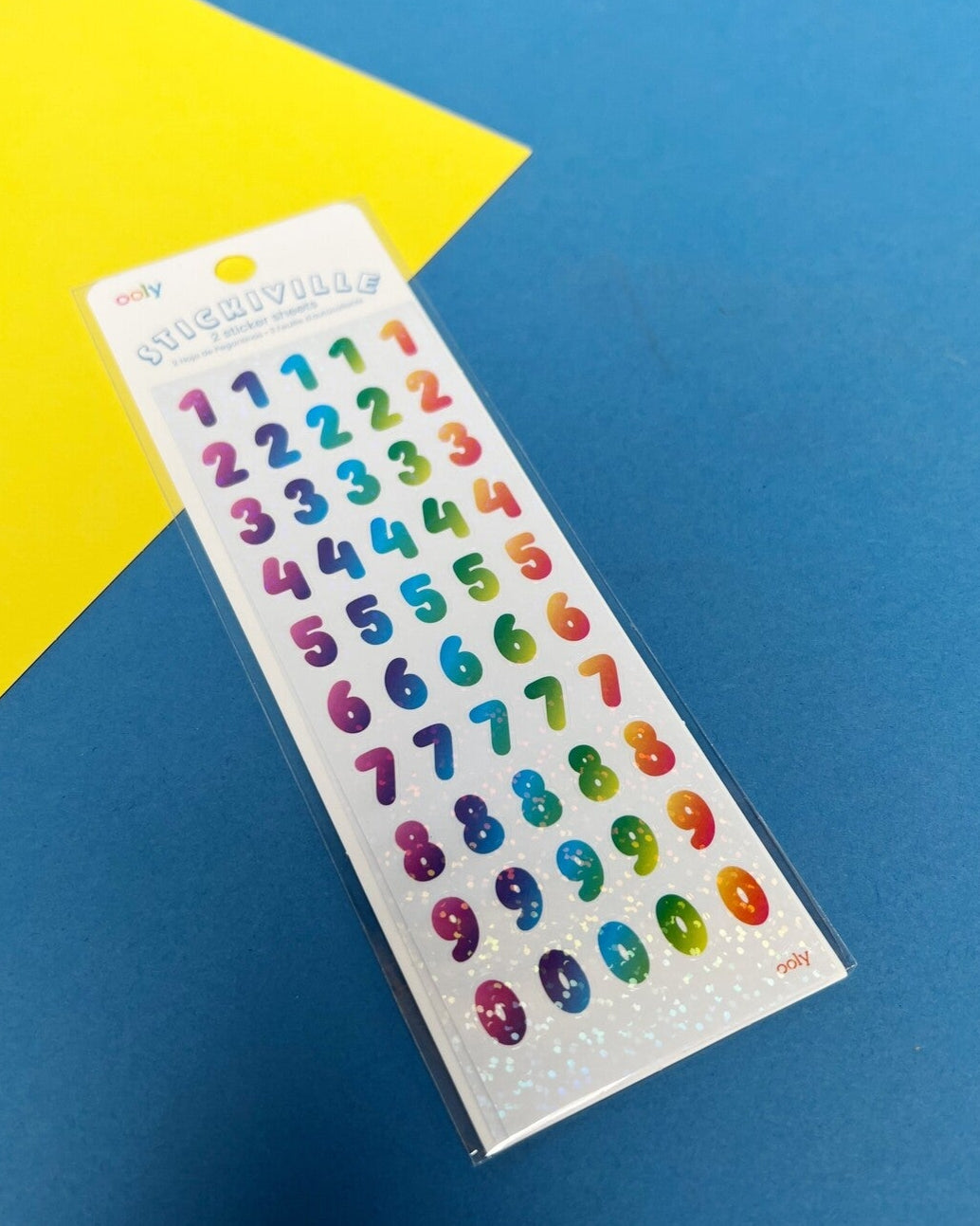 2 stickervellen met cijfers om knutselwerkjes, kaartjes of plakboeken mee te versieren. Geschikt voor kinderen vanaf 3 jaar.