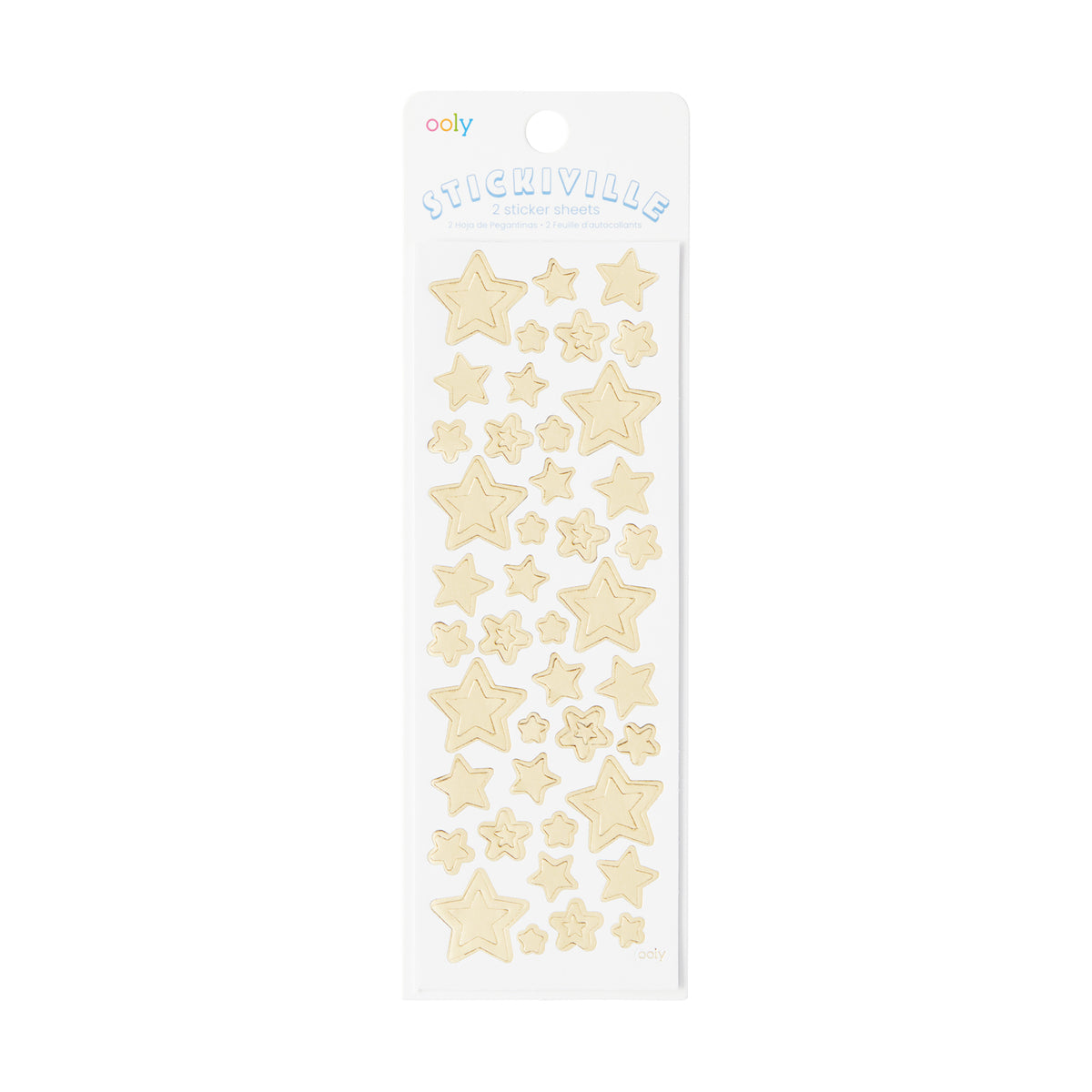 2 stickervellen met gouden sterren om knutselwerkjes, dagboeken of schoolspullen mee te versieren. Geschikt voor kinderen vanaf 3 jaar.