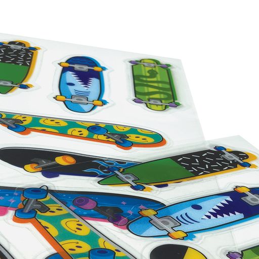 2 stoere stickervellen met skateboards om knutselwerkjes, kaartjes of plakboeken mee te versieren. Geschikt voor kinderen vanaf 3 jaar.