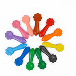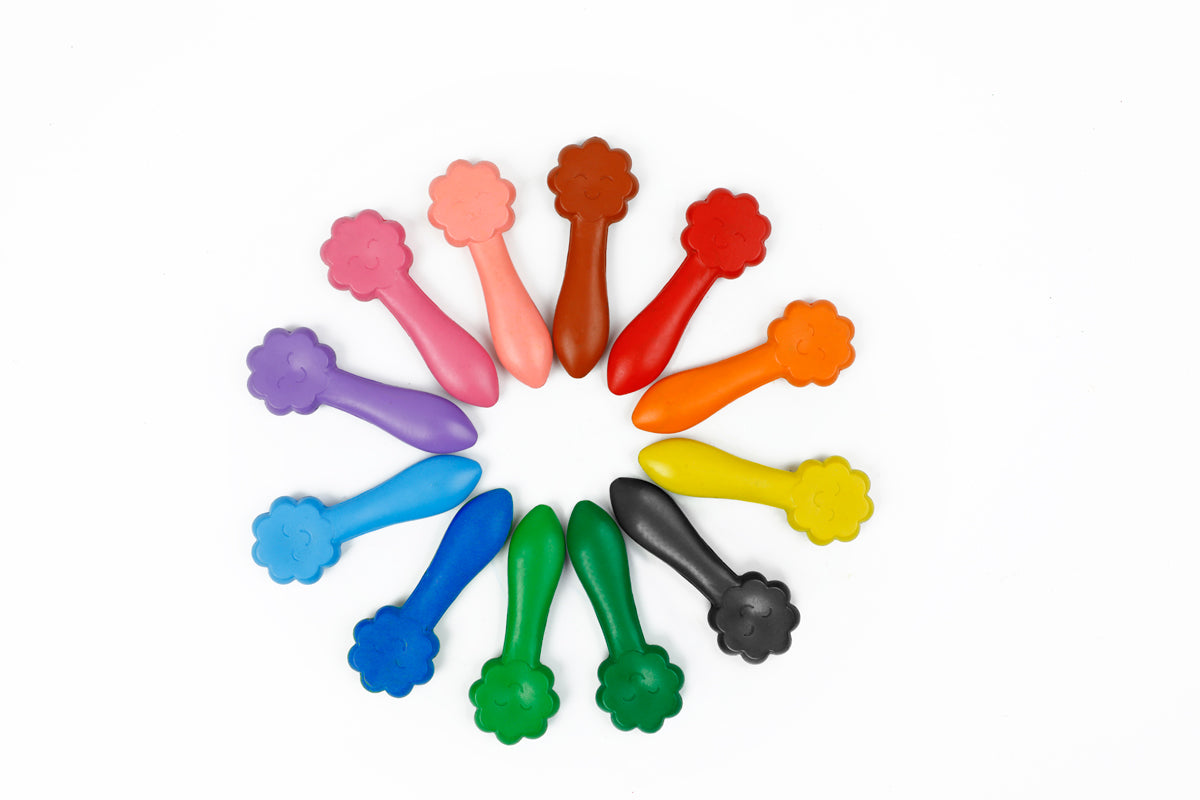 12 schattige waskrijtjes in regenboogkleurtjes.