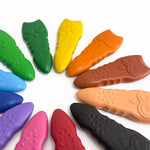 12 schattige waskrijtjes in regenboogkleurtjes.