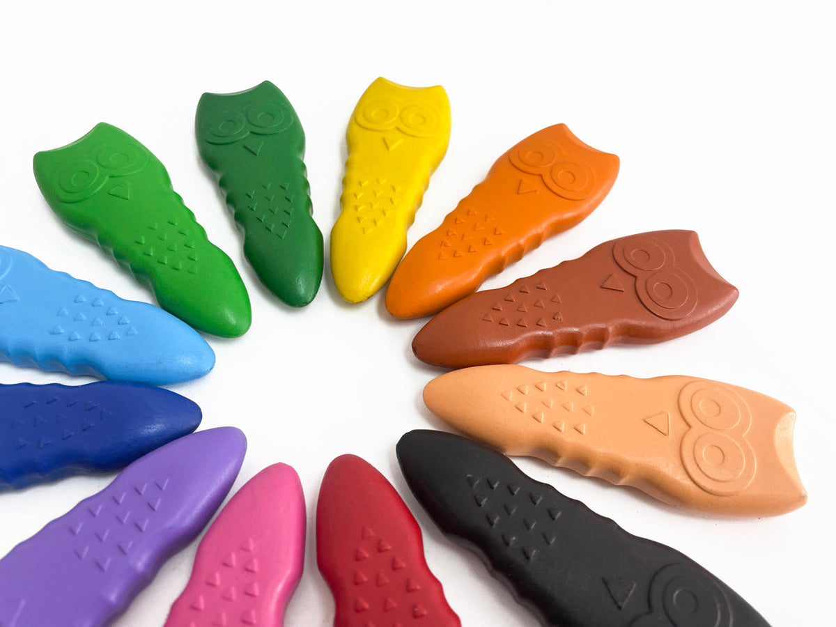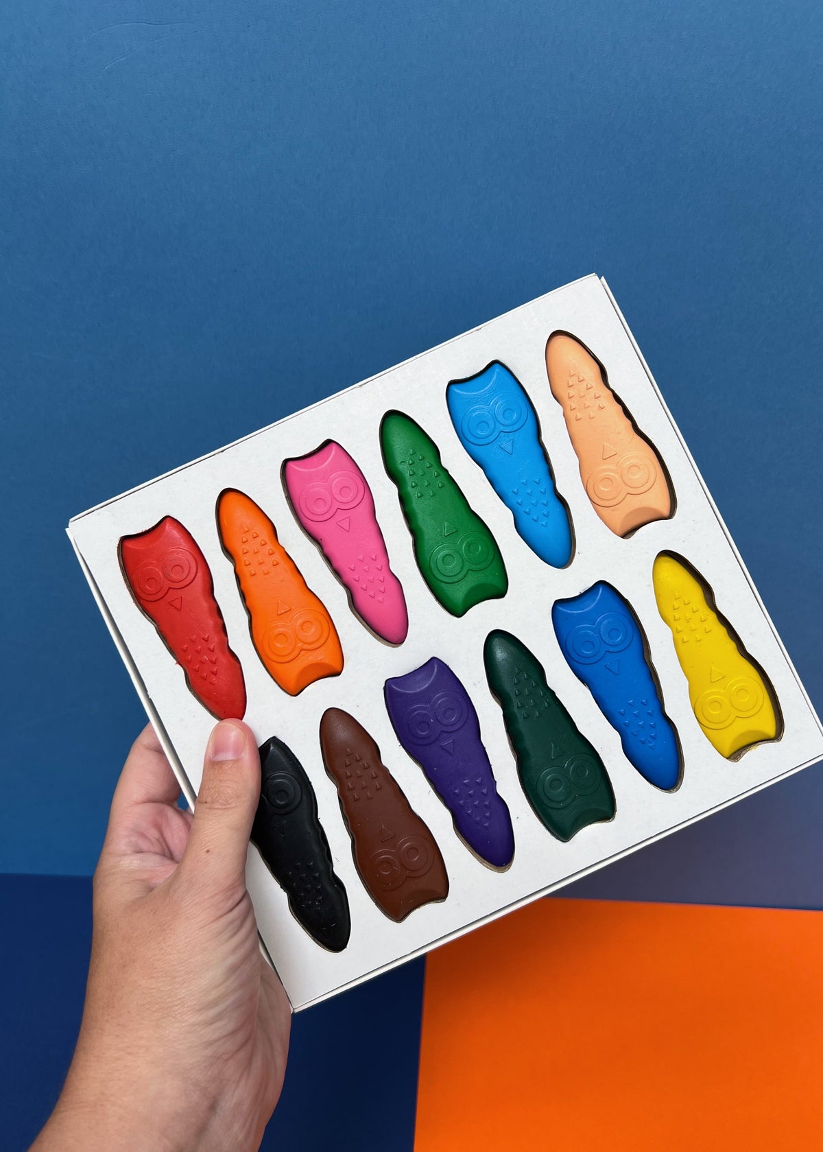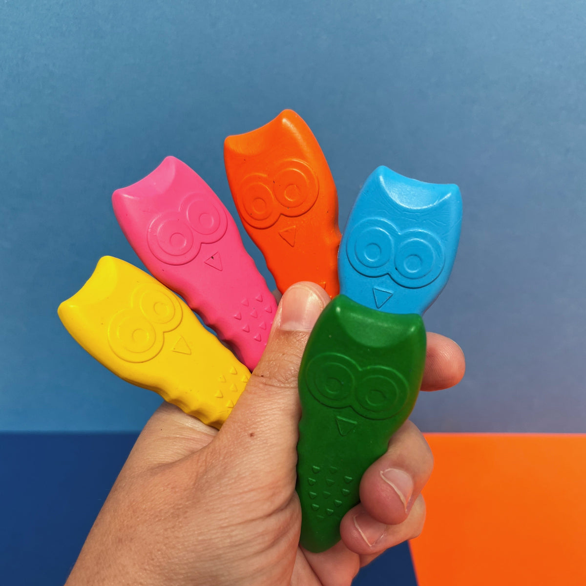 De krijtjes hebben de vorm van een uiltje en zijn niet enkel super cute, maar je kan er ook heel proper mee kleuren.