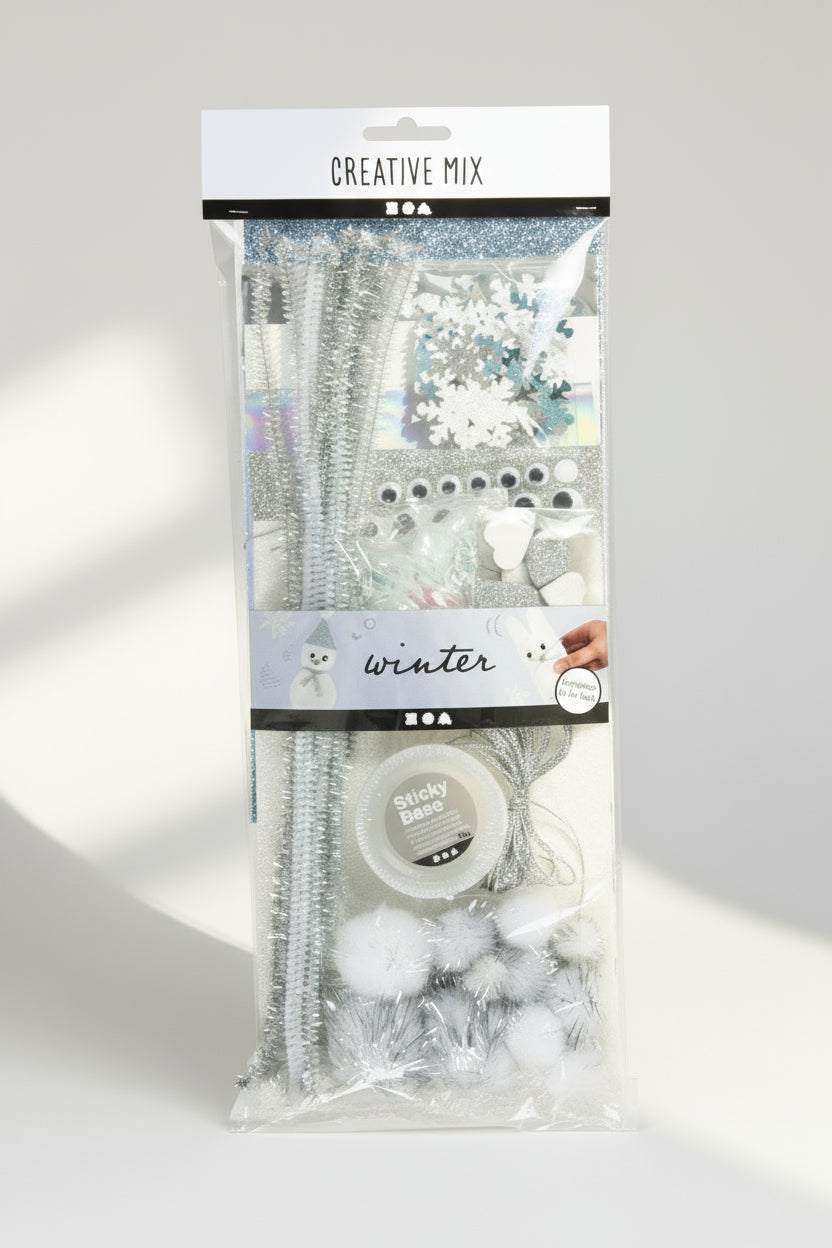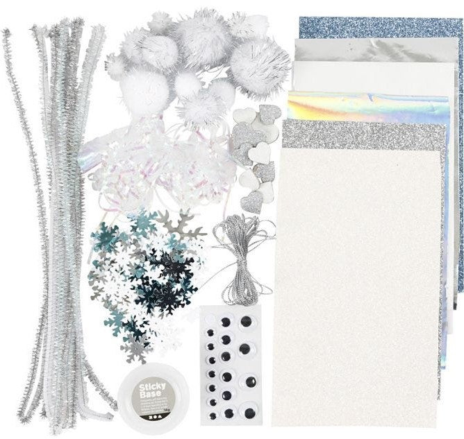 Een set met basismaterialen in winterkleuren. Perfect te combineren met andere knutselmaterialen voor eindeloos knutselplezier.