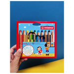 Deze set bevat 10 vrolijke basiskleuren die kinderen eindeloos kunnen combineren. Dankzij de extra dikke vorm zijn de potloden makkelijk vast te houden door kleine kinderhandjes en gaan ze bovendien extra lang mee.