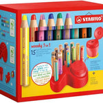 WOODY POTLODEN DESKSET VAN 15 STUKS + SLIJPER