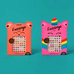 Hoe leuk zijn deze plakoorbellen! Dit pakje bevat maar liefst 104 zelfklevende oorbellen in verschillende vrolijke designs.