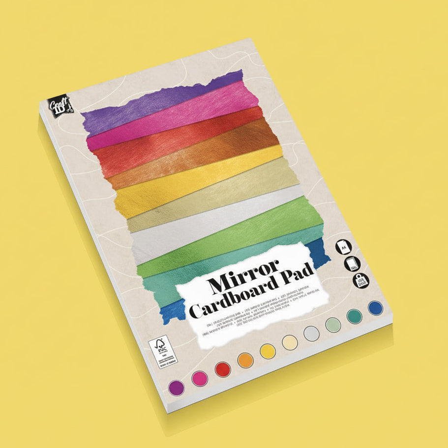 Deze set met 10 vellen spiegelkarton in regenboogkleuren (paars, roze, rood, oranje, geel, ivoor, neutraal, groen, turquoise en blauw) is perfect voor al je knutselprojecten.